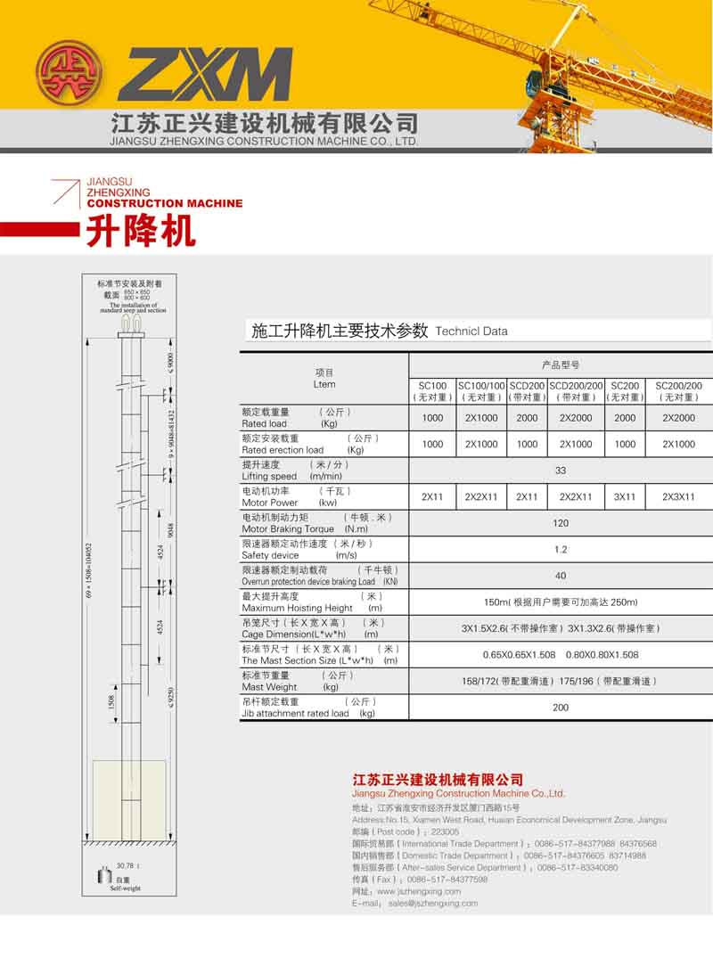 3、最大提升速度33米/分,最大提升高度150米,經(jīng)特別設(shè)計可達(dá)到250米;